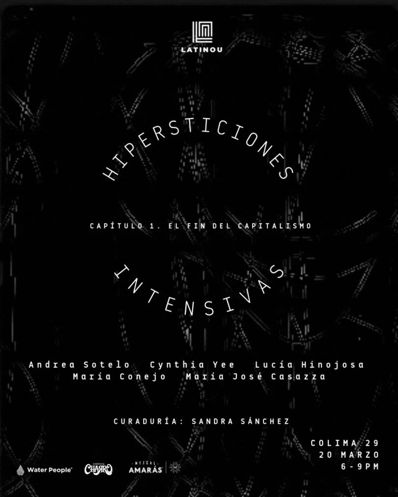 Latinou se enorgucelle de presentar la exposición “Hipersticiones intensivas. Capítulo 1. El fin del capitalismo“ con curaduría de Sandra Sánchez y presentando piezas de cinco artistas: Andrea Sotelo, Cynthia Yee, Lucía Hinjosa, María Conejo y María Jose Casazza.